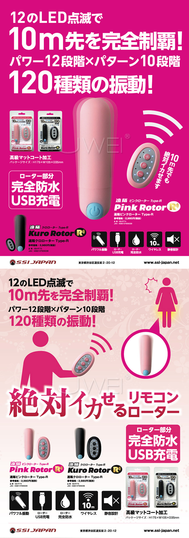 日本原裝進口SSI. 遠隔ピンクローターType-R 12x10段變頻遠端操控遙控跳蛋-粉色