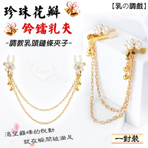 ►您現在的位置:首頁>【乳の調戲】高檔珍珠花瓣鈴鐺乳夾~女用調教乳頭鏈條夾子﹝一對裝﹞