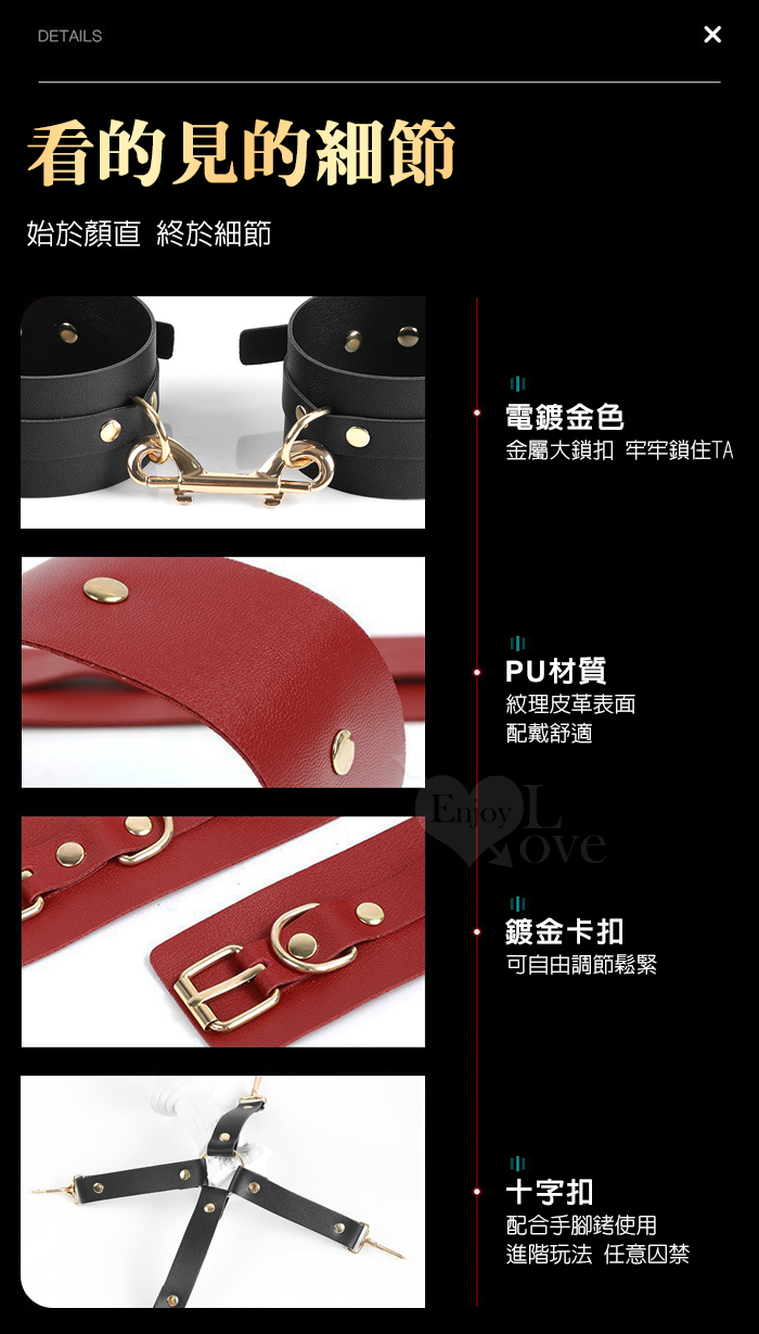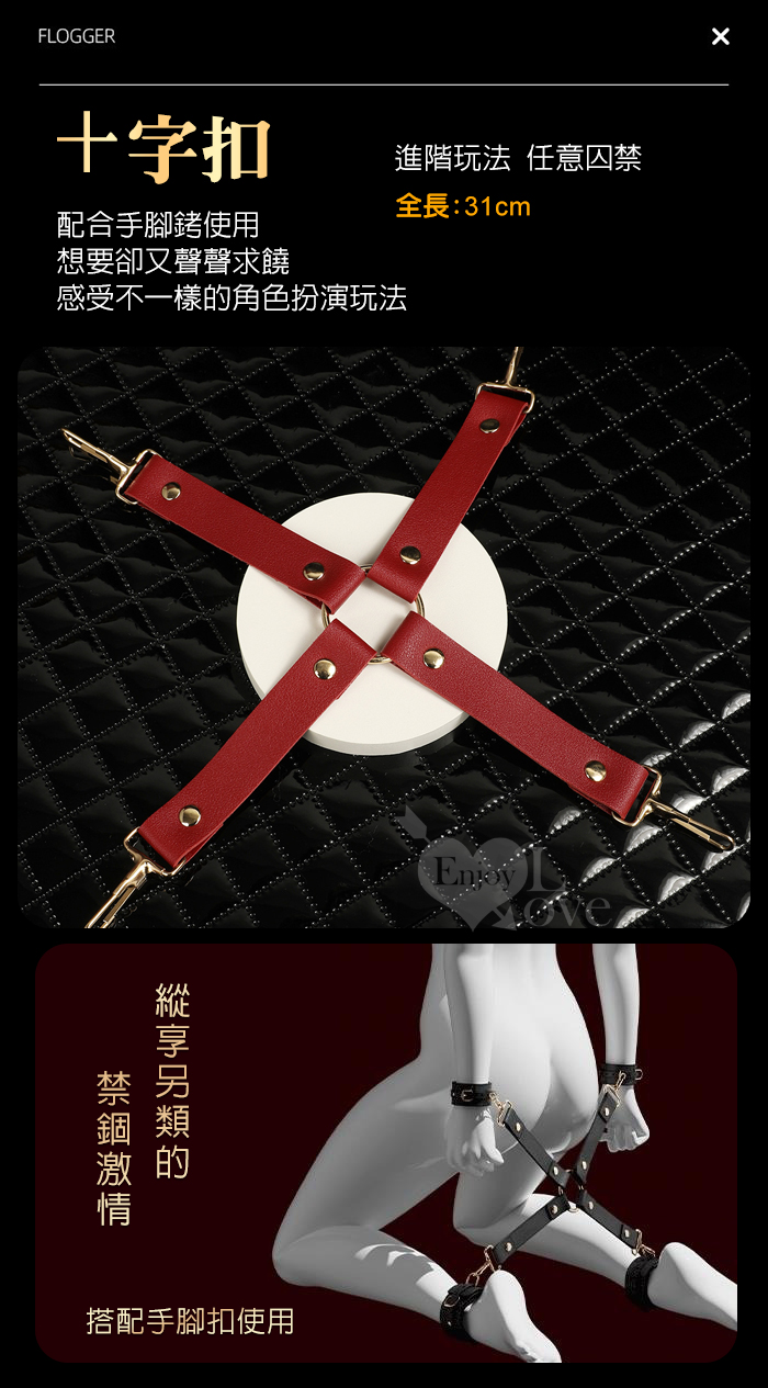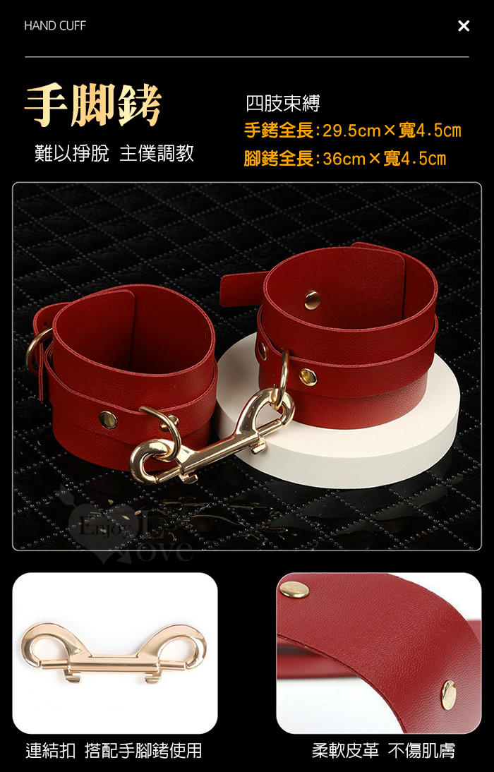 SM情趣道具 ‧ 皮革十字扣+手腳銬~調教捆綁束縛/成人性愛玩具﹝酒紅色﹞