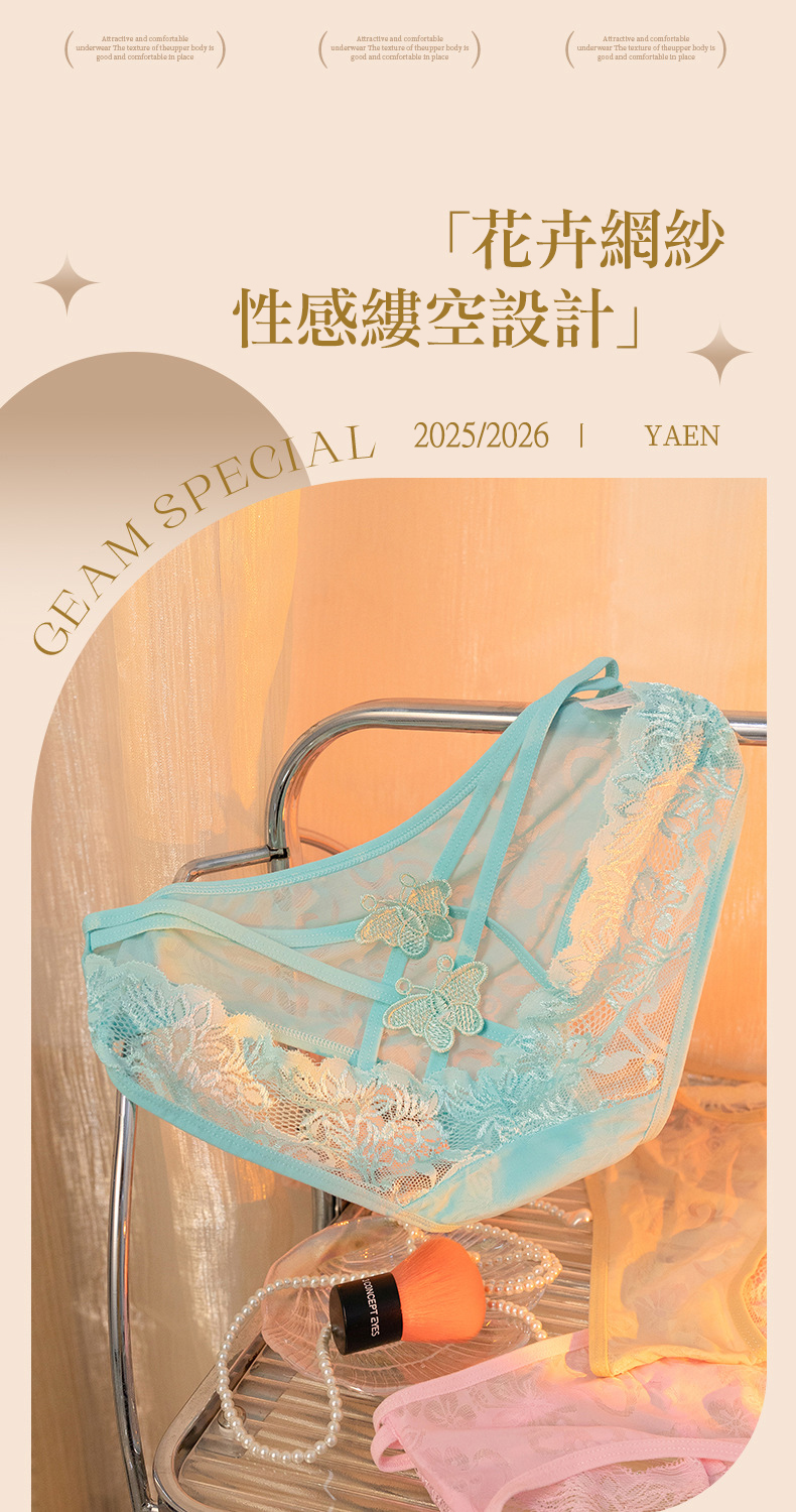 性感屁股蛋蕾絲內褲【M】性感半透網紗內褲 後背鏤空細帶蝴蝶三角褲