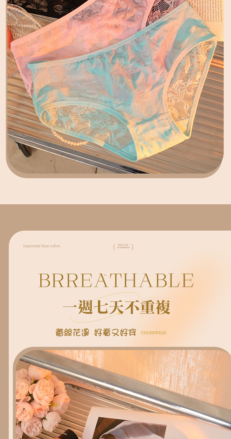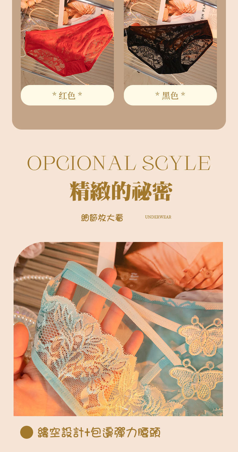 新款性感屁股蛋 半透蕾絲8色性感內褲