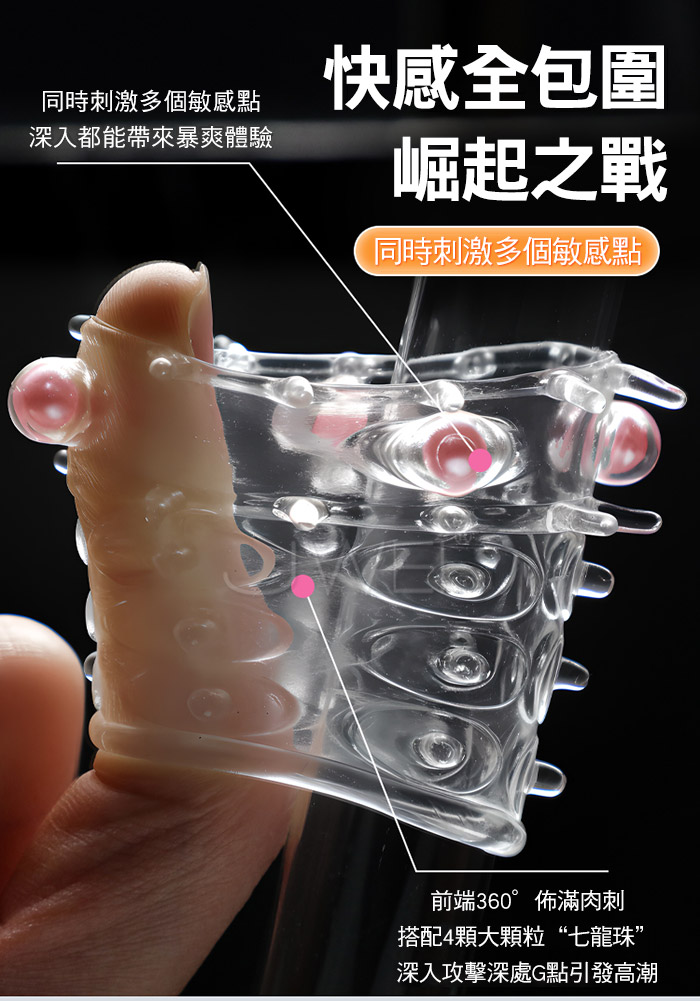 探索者.大顆粒刺激摩擦快感鎖精延時狼牙套-4入裝【透明】