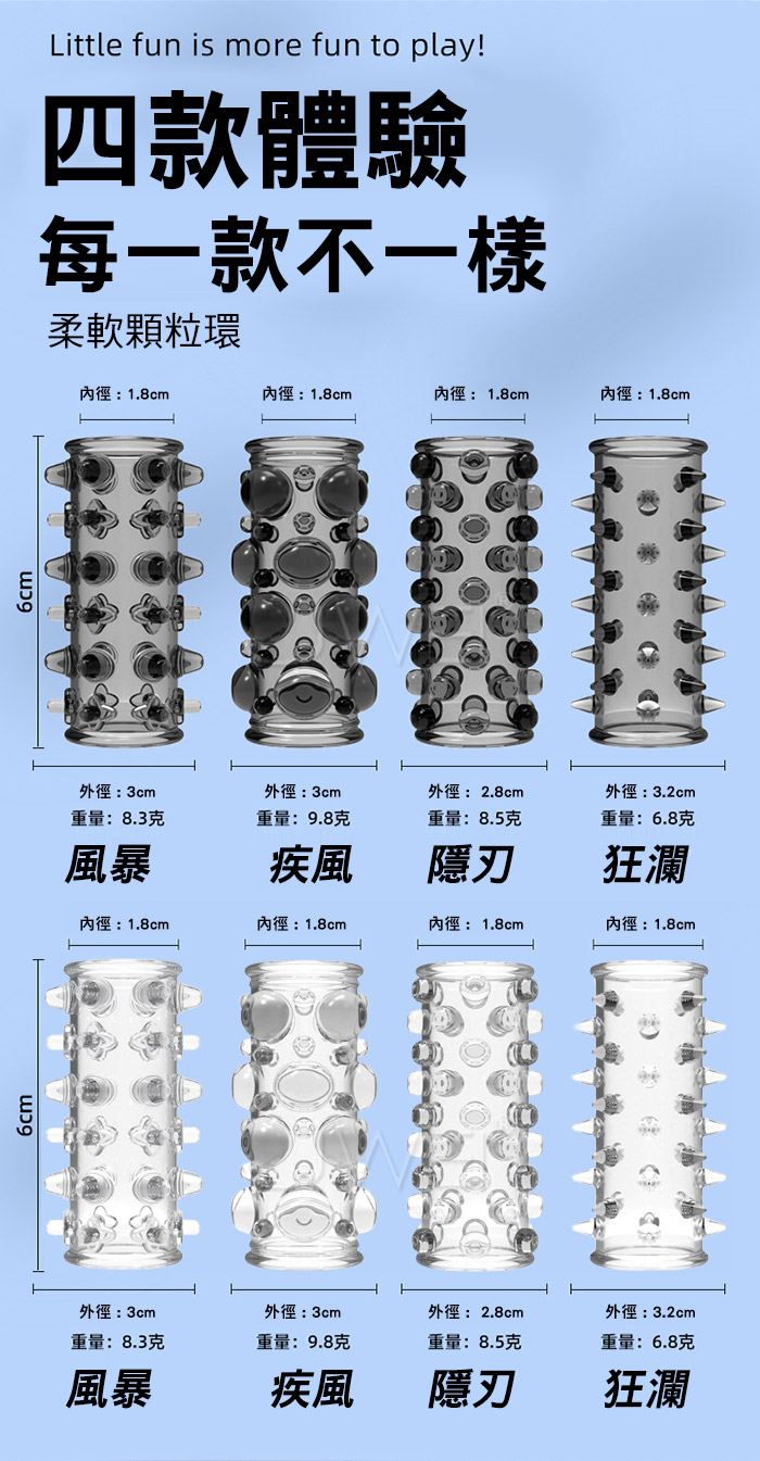 ►您現在的位置:首頁>探索者.大顆粒刺激摩擦快感鎖精延時狼牙套-4入裝【透黑】