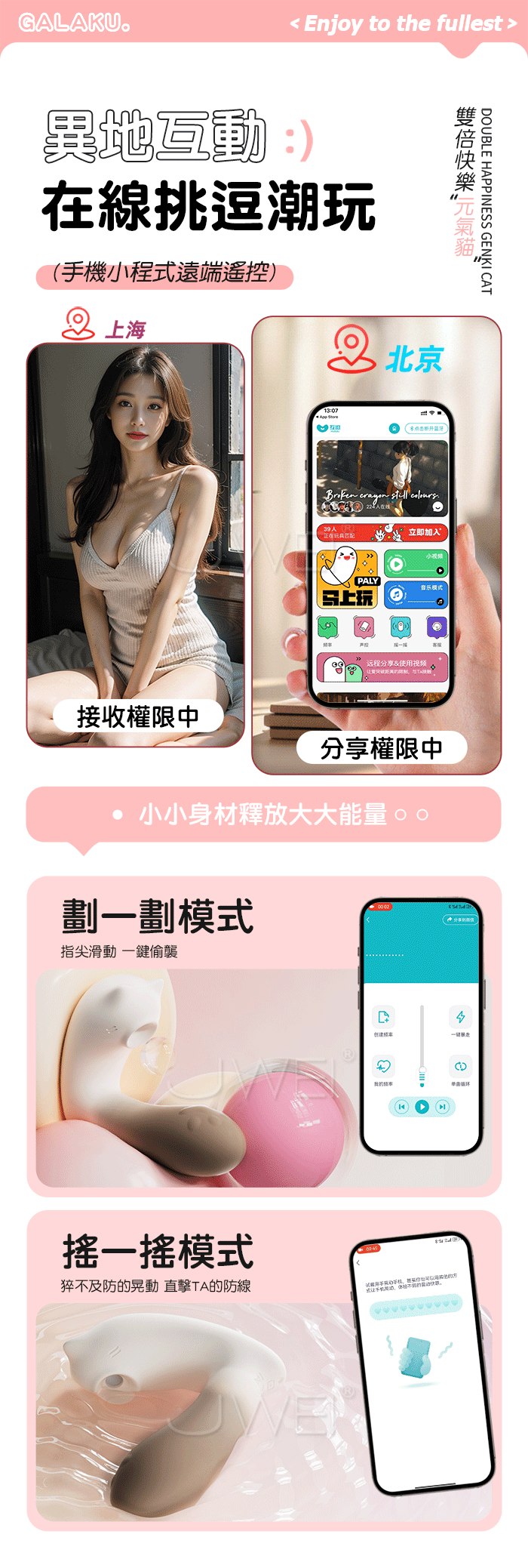 GALAKU.元氣貓 10頻吮吸+10頻震擊G點 APP遠距遙控萌趣穿戴跳蛋