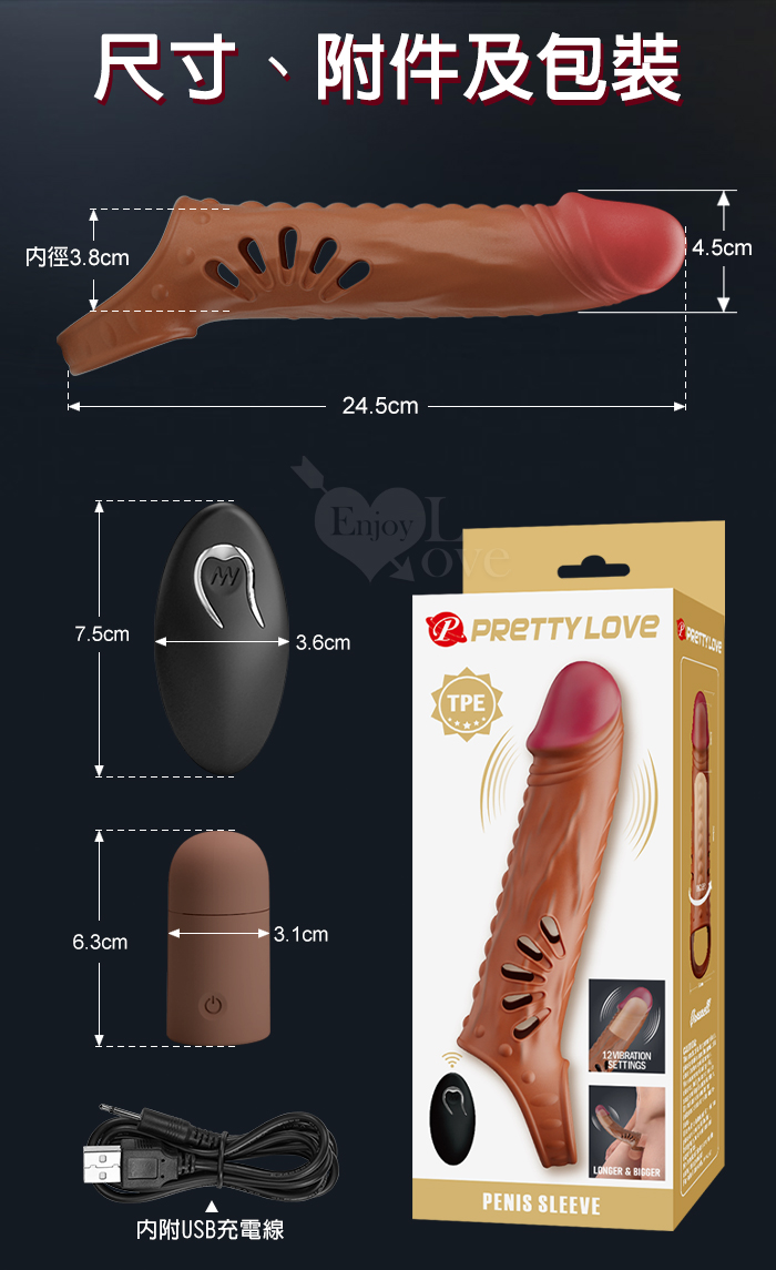 派蒂菈 ‧ VANEL 瓦內爾 無線遙控12變頻強勁內震動加長增粗老二束精套﹝擴展男性尺寸/男女共振同享受/USB充電﹞