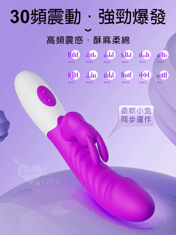 PRETTY LOVE 派蒂菈 ‧ 頑皮兔 內外雙重30頻雙頭同震按摩棒-洋紅