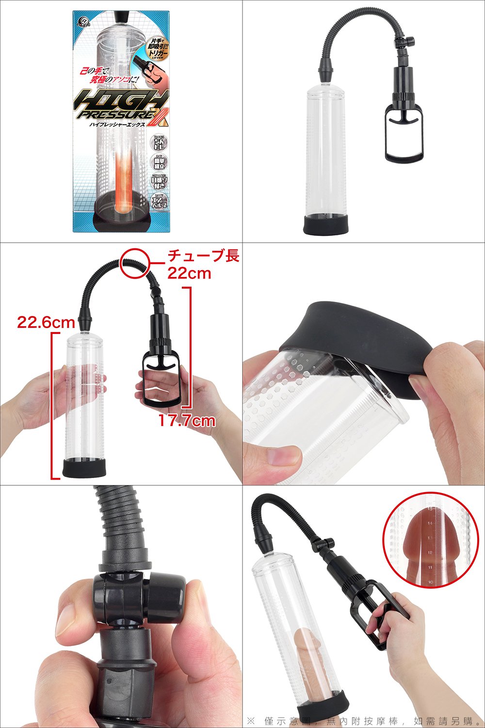 尺寸:管/長(含連接處)24.3x直徑6.6x直徑6.6cm,內徑約5.8cm 可深入長約22cm