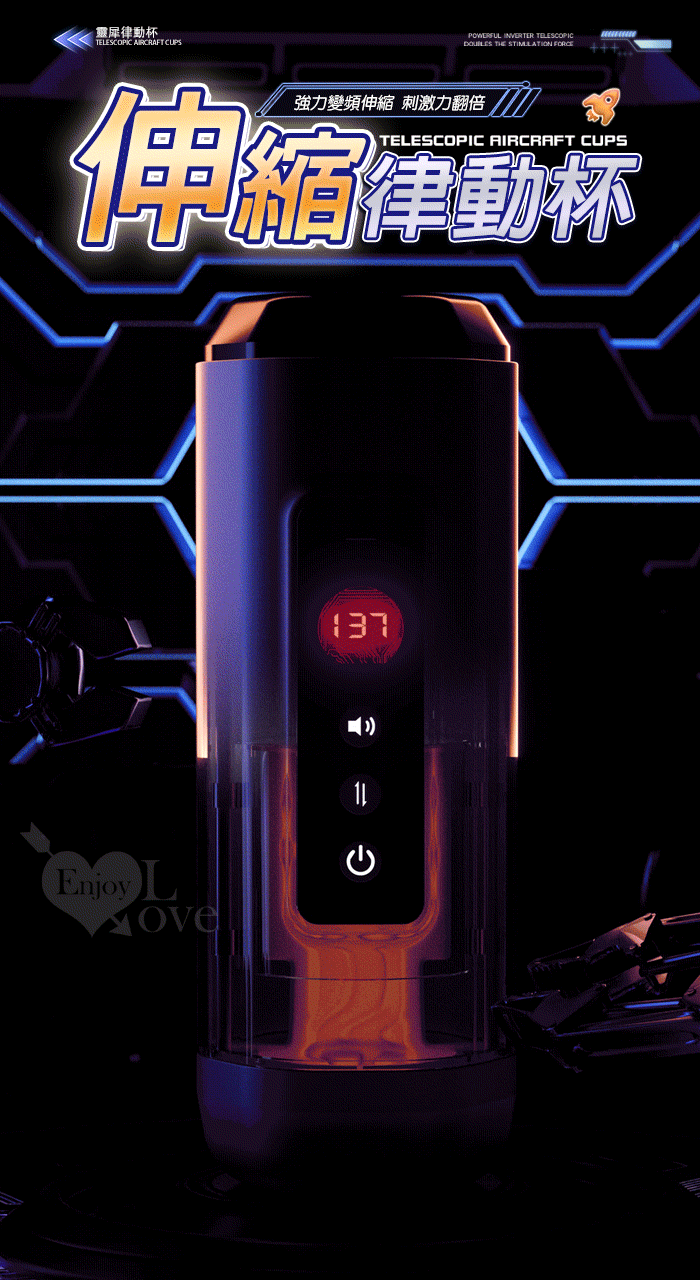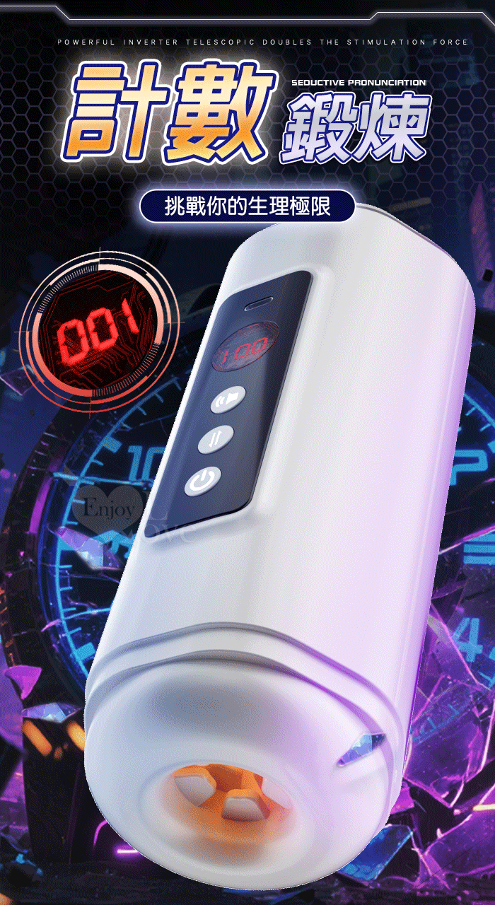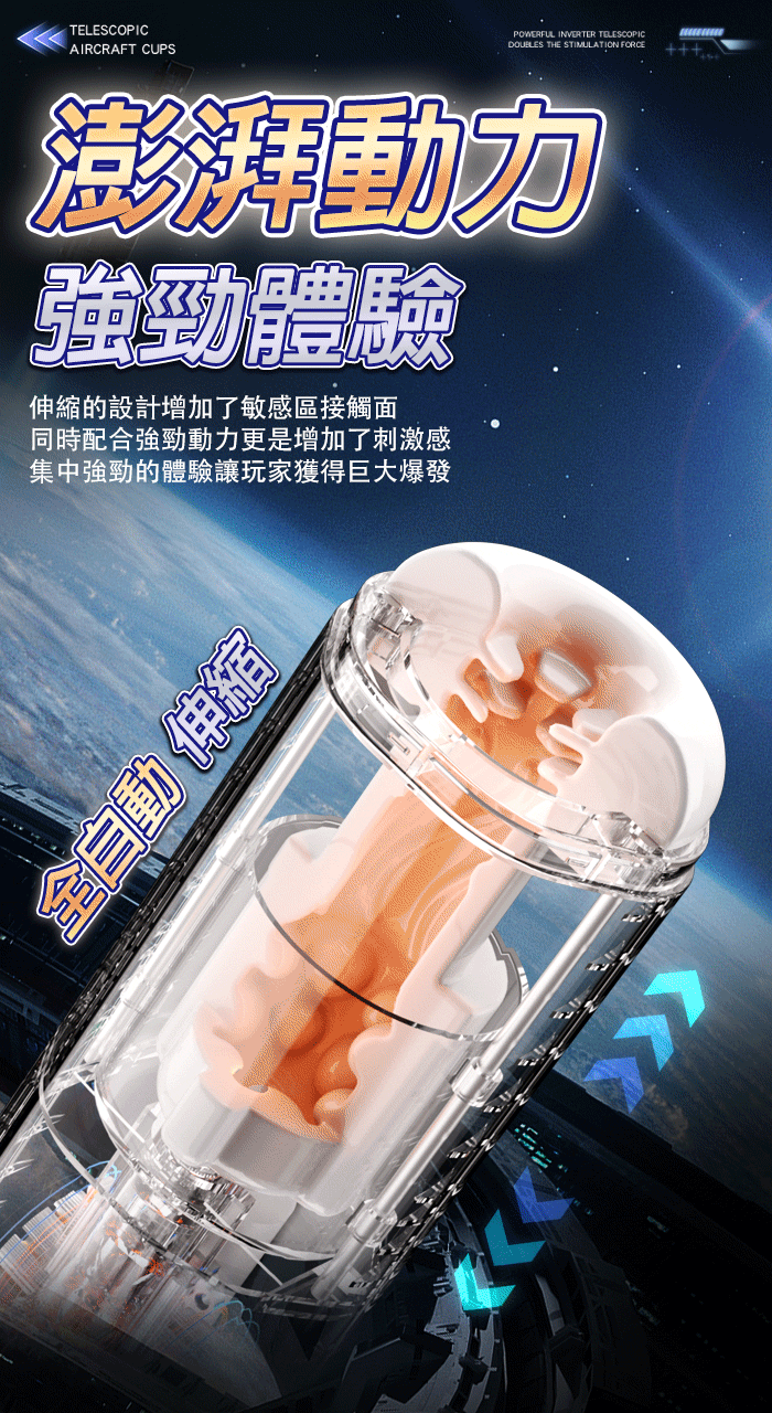 | 靈犀律動杯 ‧ 智能4頻調控伸縮+語音+計數鍛煉榨精飛機杯﹝四國語音呻吟+顆粒刺激腔道+耳機+USB充電﹞