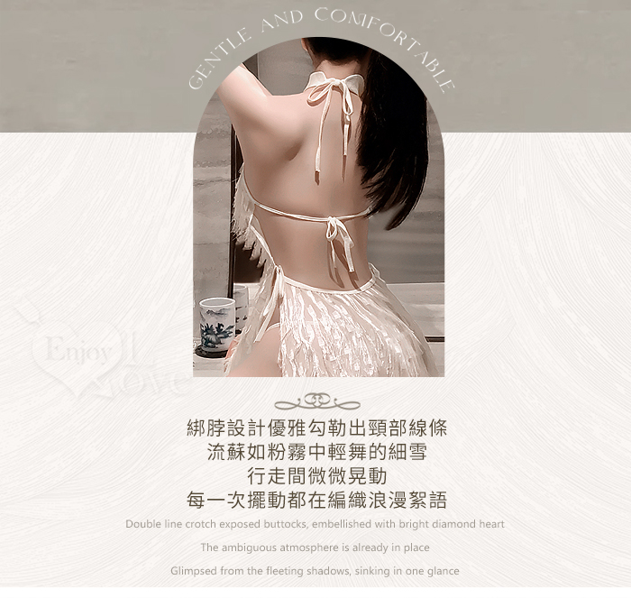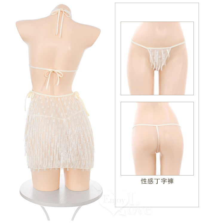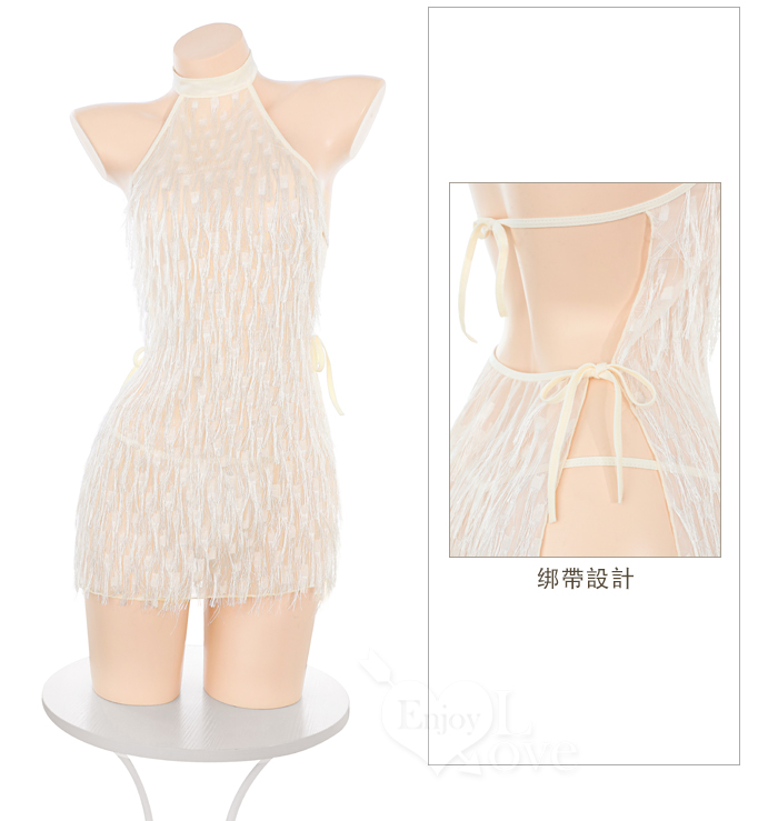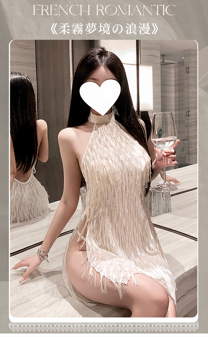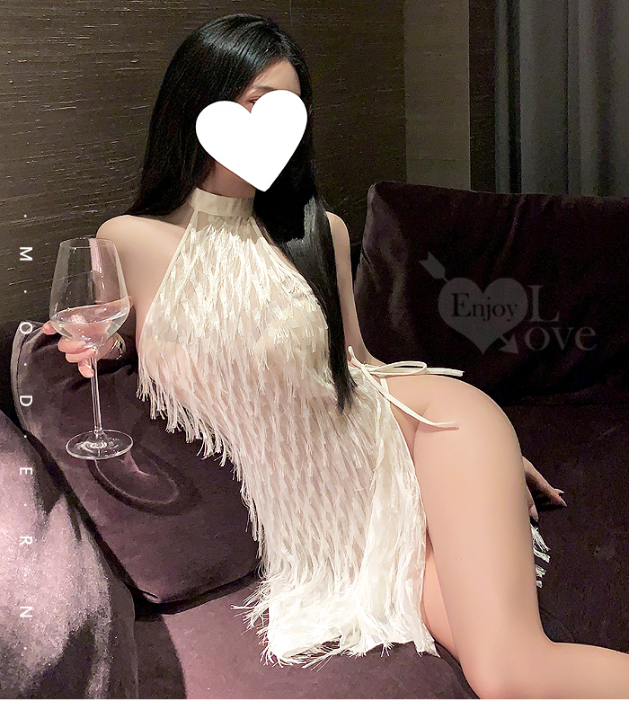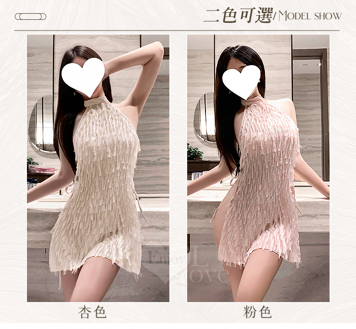 情趣夜店派對服!削肩綁脖耀眼流蘇裸背側開衩性感連身裙兩件組﹝杏﹞