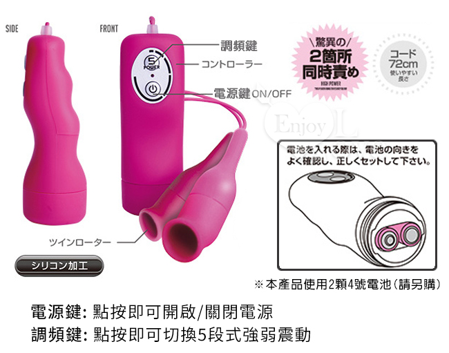 雙擊發震動頭,不管要戲弄乳頭或挑逗陰蒂私密處都能得心應手。