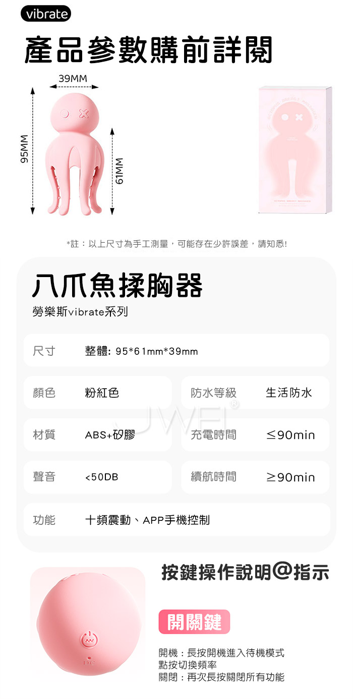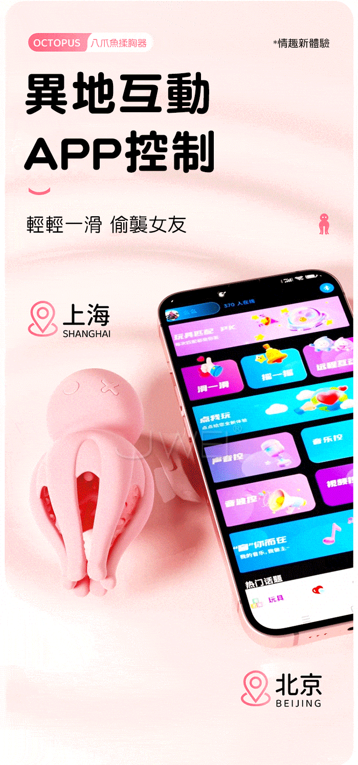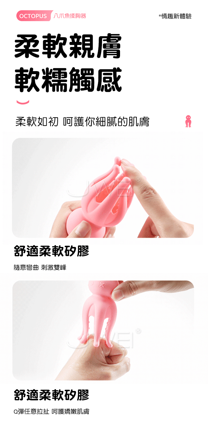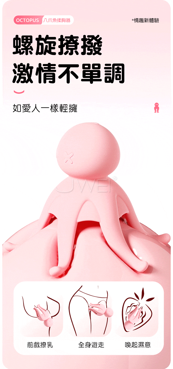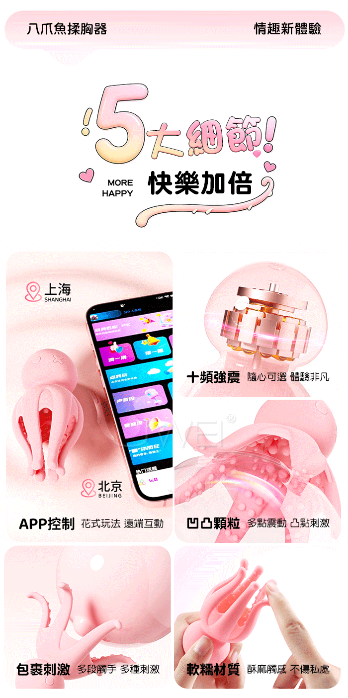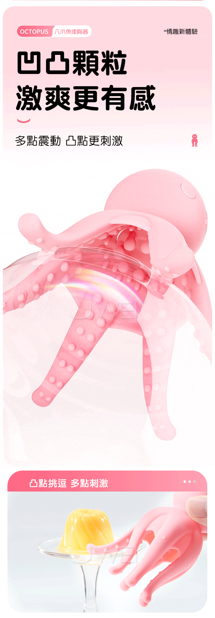ROSELEX勞樂斯.八爪魚 10頻激震 超帶感凹凸顆粒刺激酥麻APP智控揉胸器 章魚乳房