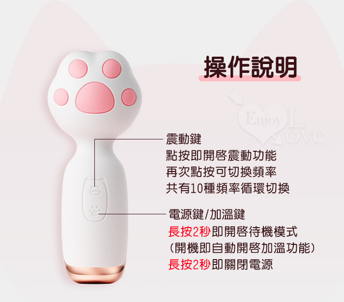 ►您現在的位置:首頁>ROSELEX 萌爪AV棒 ‧ 可愛小貓爪加溫震動棒-10頻震動陰蒂刺激調情自慰 - 白