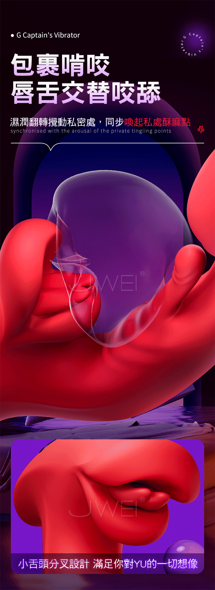 包裹啃咬唇舌交替咬舔,濕潤翻轉攪動私密處,同步喚起私處酥麻點