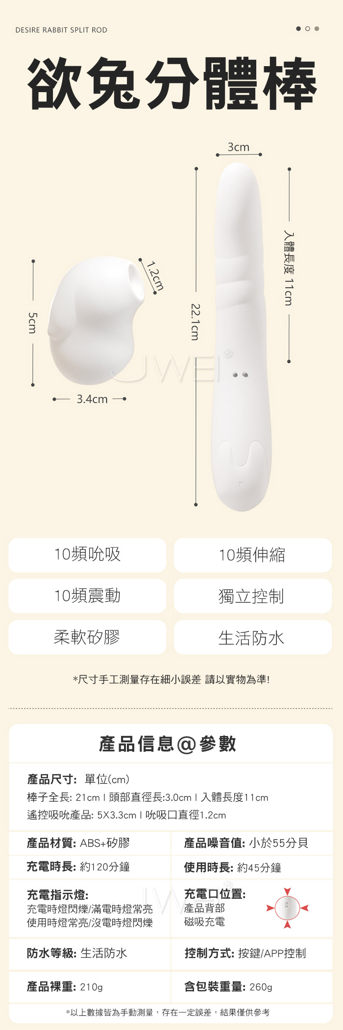 | 謎姬 MizzZee.欲兔.10頻接觸感應裹吸x10頻超伸縮頂震 APP遠控加溫分體式按摩棒