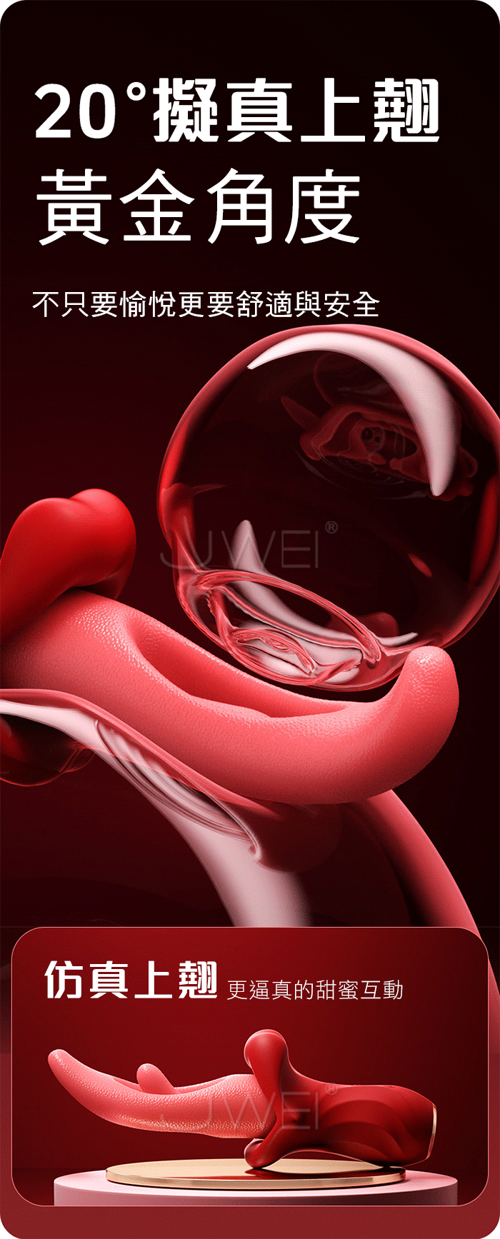20度擬真上翹黄金角度,不只要愉悅更要舒適與安全,更逼真的甜蜜互動