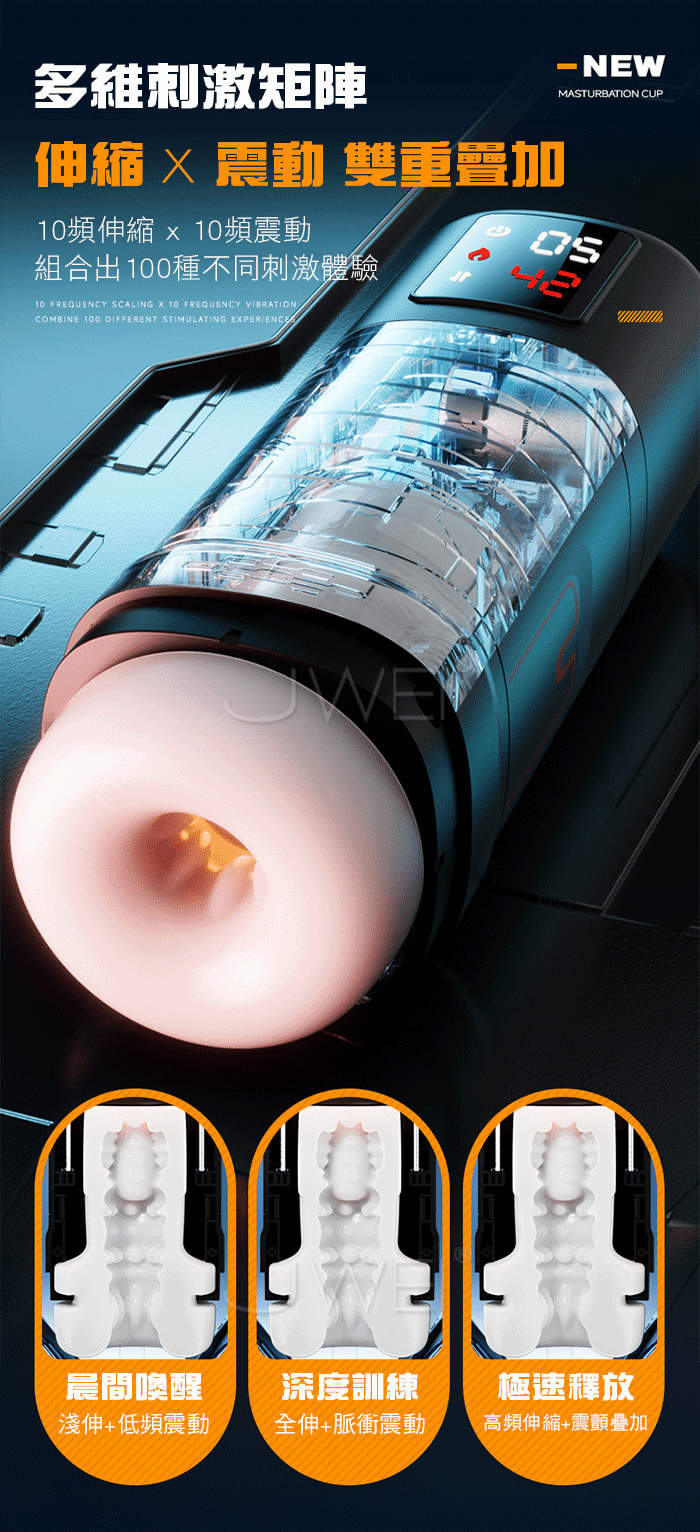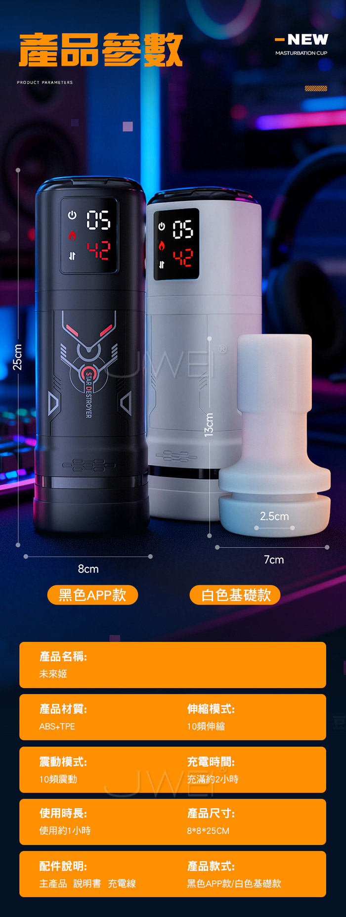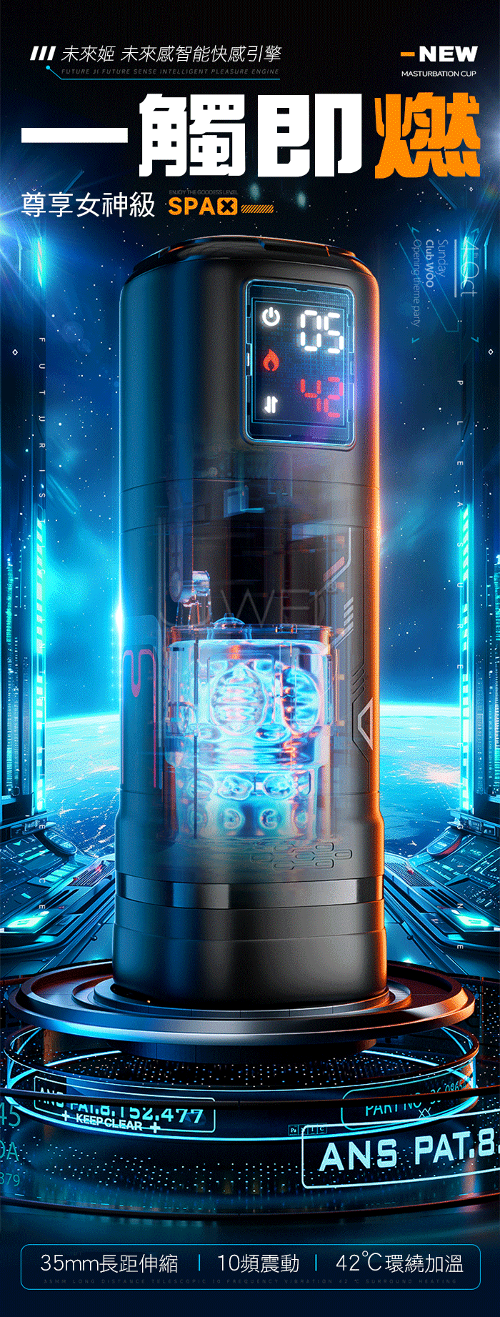 | 未來姬.10x10段伸縮激顫 3D肉感恆溫加熱屏顯智能飛機杯【黑色APP款】
