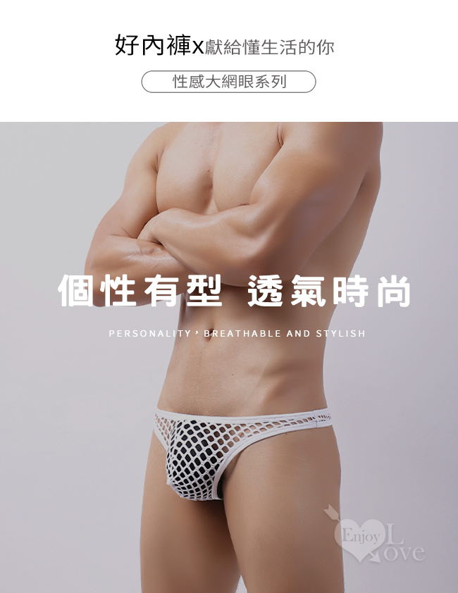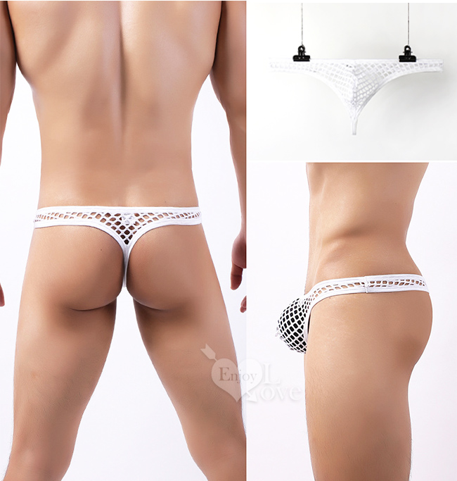 | 《 Enjoy Love 》性感半透大網孔男士丁字褲 - 白﹝XL﹞