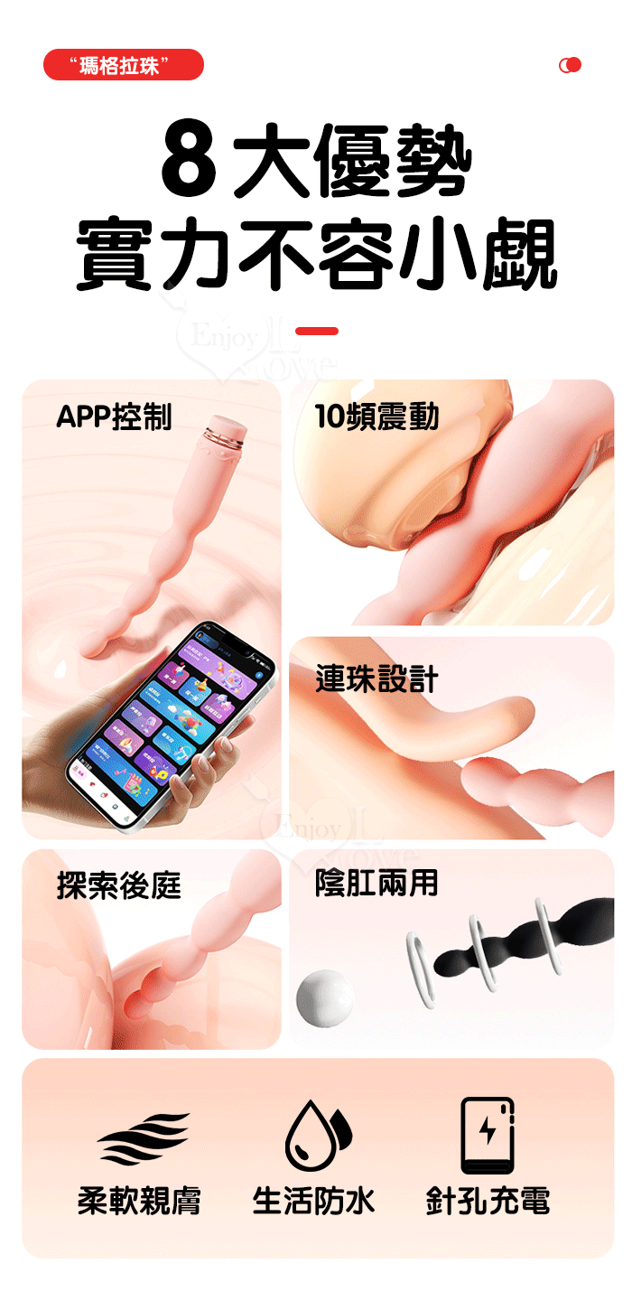 | ROSELEX 新手玩家 瑪格連環拉珠按摩棒~10頻強勁震動/細小易入/男女通用/可手機APP遙控