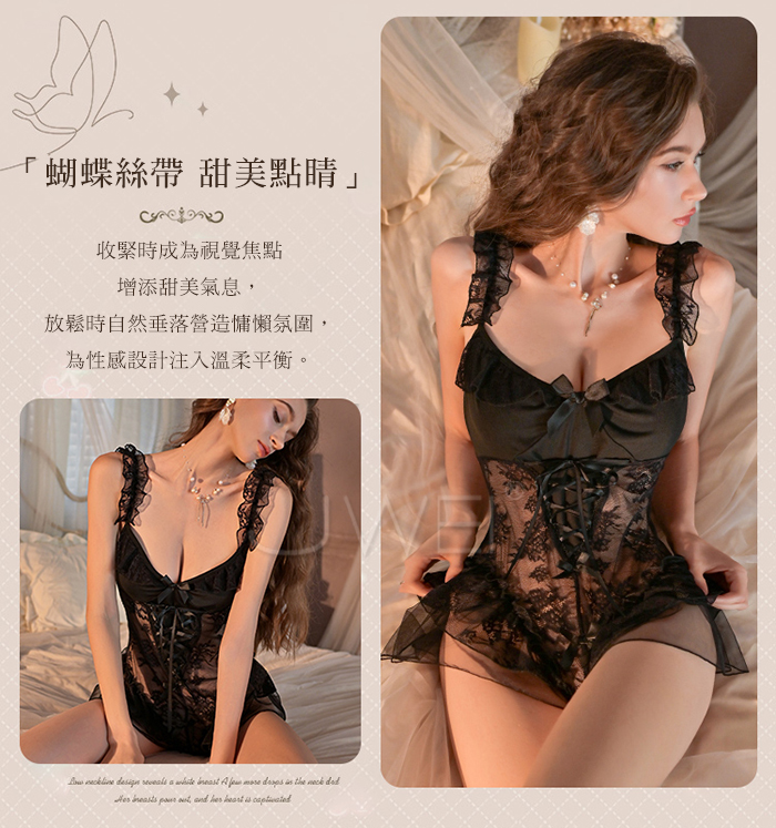 ►您現在的位置:首頁>慾情薔薇.蕾絲深V美肩露背花蔓透紗開襠連體衣【白色】